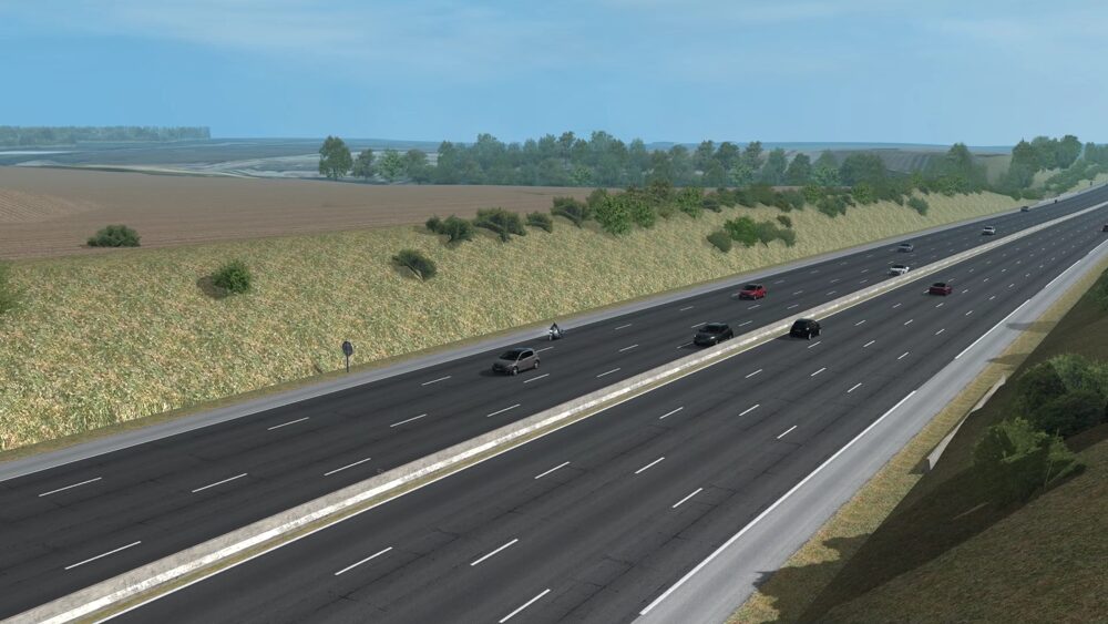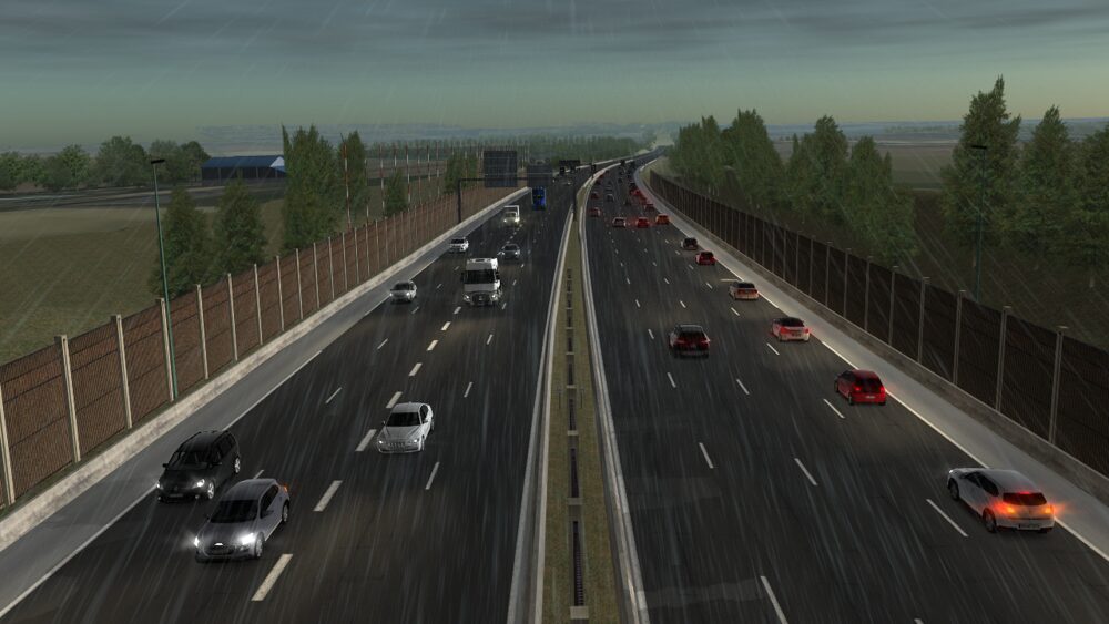 - Représentation visuelle du terrain et des routes cohérente avec surface de roulement (pentes, dévers, dos d’ânes, déformations, bordures, trottoirs…).